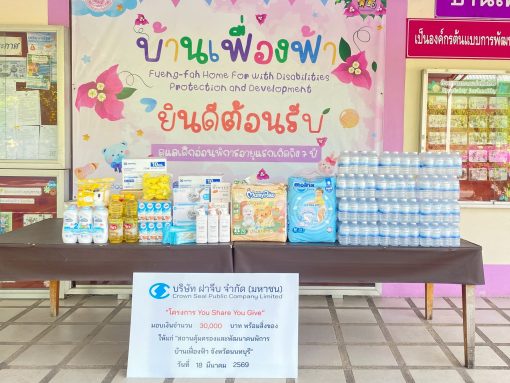 On Wednesday 18th March 2026, led by Mr. Ariya Dhananukulkit, Vice President-Sales, together with employees jointly donated money total 30,000 baht, along with essential supplies and medical necessities to the Fueng-fah Home for Persons with Disabilities Protection and Development in Nonthaburi Province. The support aims to enhance the care and development of children with disabilities from birth to 7 years old.
