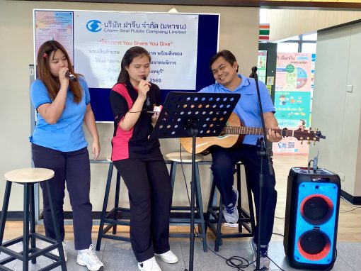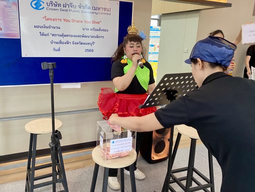 Crown Seal Public Company Limited organized a “Music for Charity” activity within the company, providing employees with an opportunity to participate in fundraising. The activity was held under the “You Share You Give” now in its 6th consecutive year, with all proceeds donated to Fueng-fah Home for Persons with Disabilities Protection and Development.